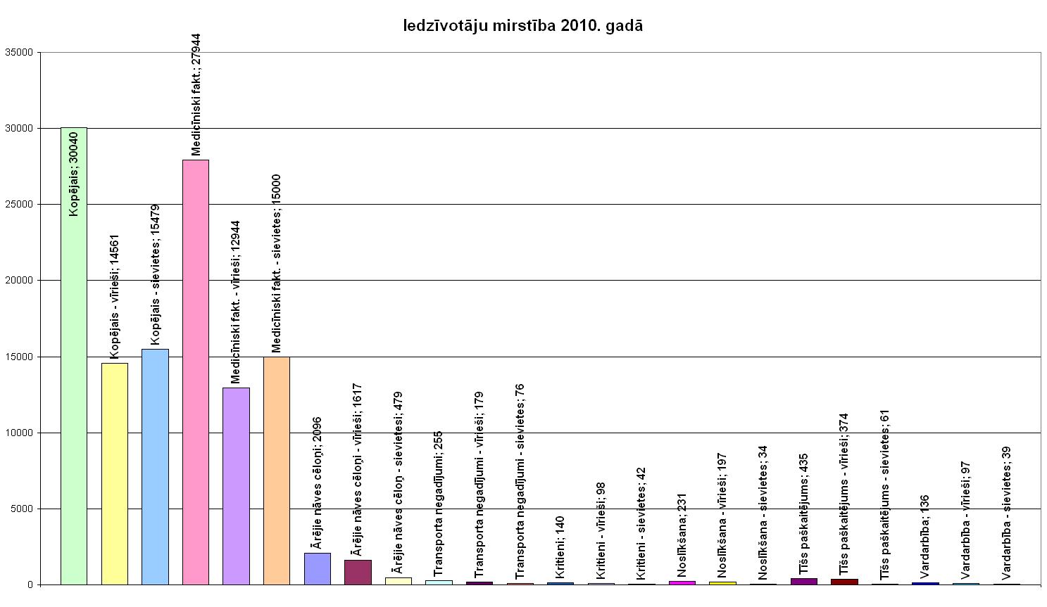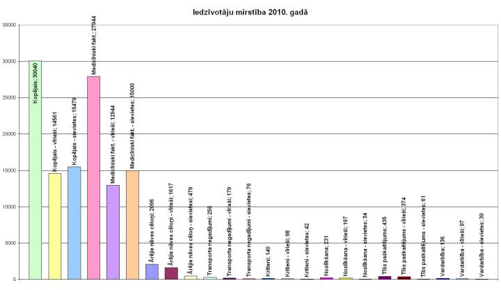 Tas mani pamudināja izpētīt divus rādītājus – Latvijas iedzīvotāju nāves cēloņus un iedzīvotāju vecuma struktūru, abus 2010. gadā.