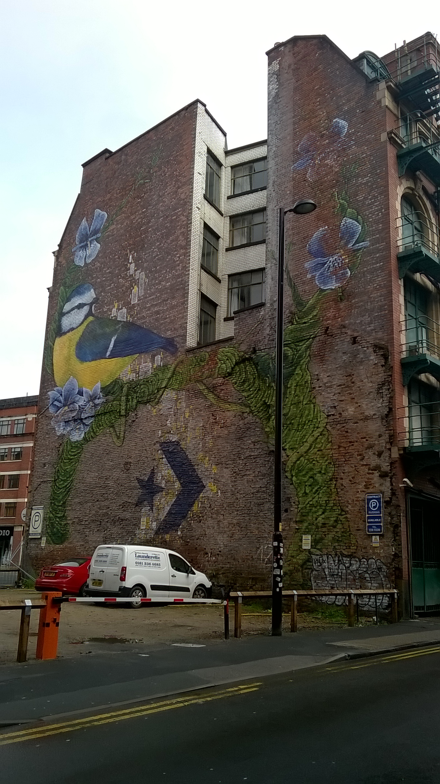 Māksla uz mājas ugunsmūra. Mančestras centrā, apmaldoties ceļā uz Pikadilī staciju.
