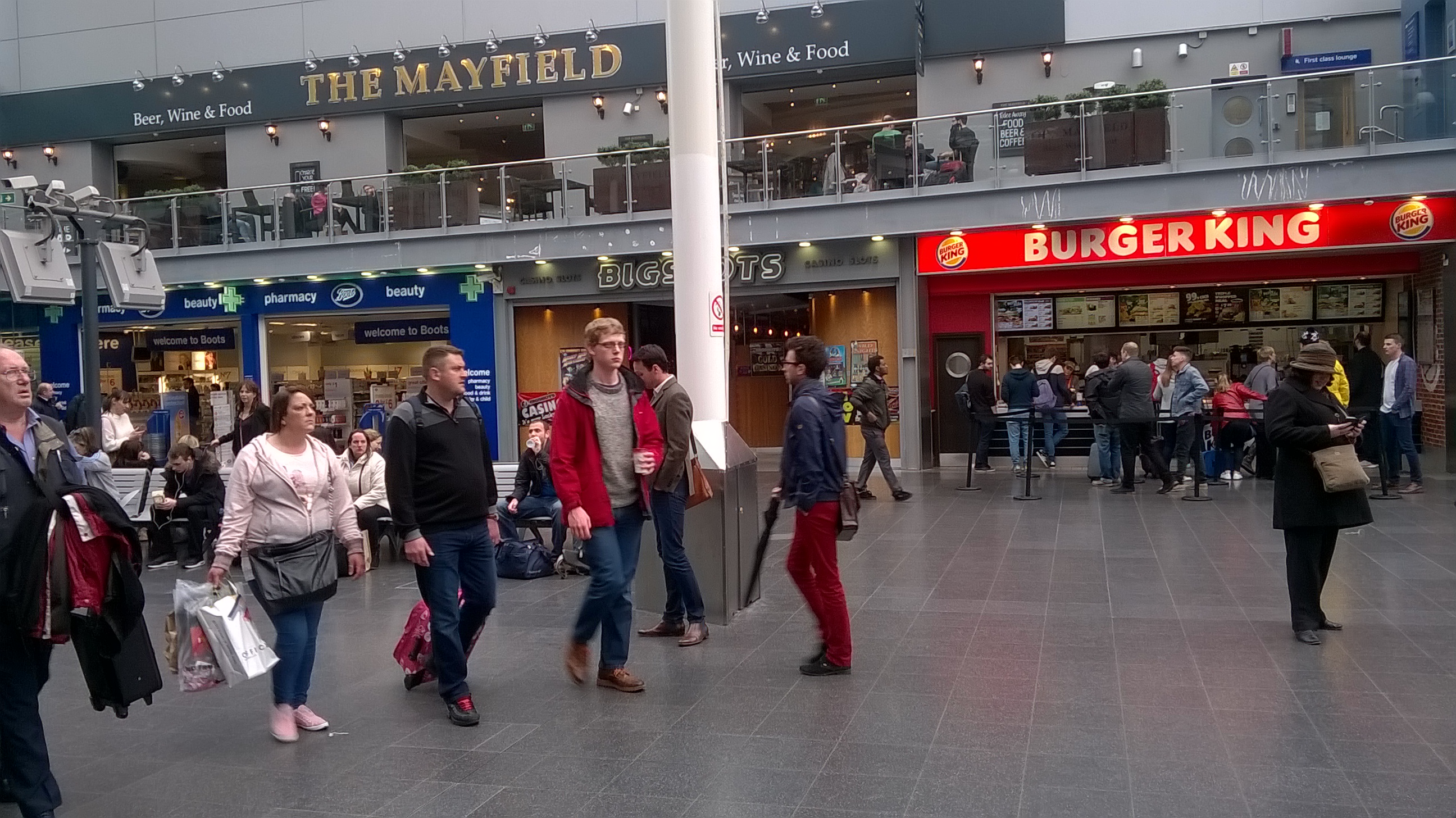 Mančestras Pikadilī stacija. The Mayfield krogā var paēst labas pusdienas – par 9.** mārciņām un gaidot tikai 10 minūtes dabūju labu porciju (un es ēdu daudz…) chips jeb ceptu kartupeļu ar šķiņķi un ceptām olām.